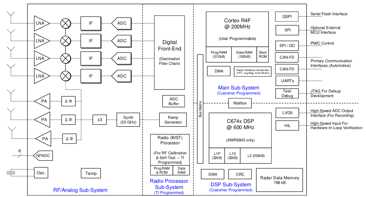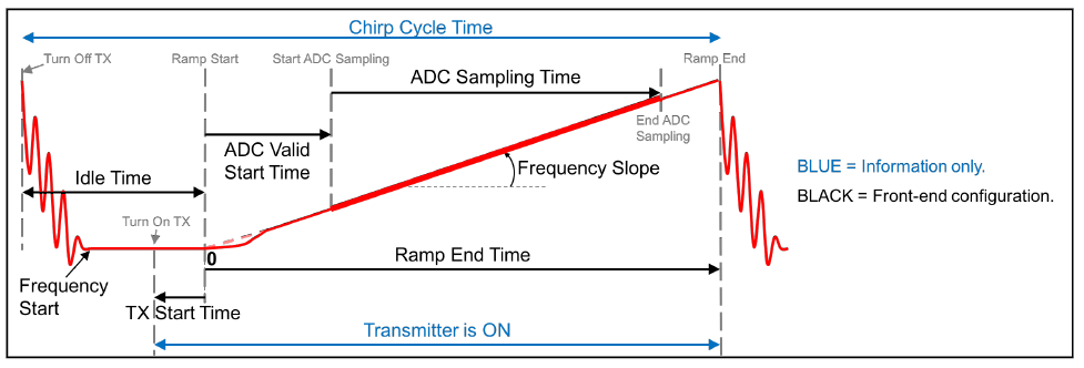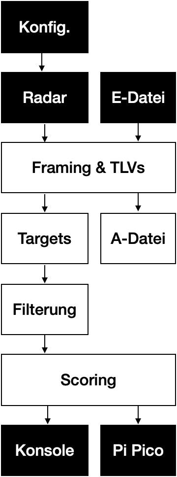 | Ziel | $S$ | $f_s$ | $N_{samples}$ | $N_{chirps}$ | $T_{ramp}$ | $T_{idle}$ | $T_{ADC Start}$ | $B$ | |------------|-----|-------|---------------|--------------|------------|------------|-----------------|-----| | $d_{max}$ | ↓ | ↑ | | | | | | | | $v_{max}$ | ↓ | ↑ | ↓ | | ↓ | ↓ | ↓ | ↓ | | $\Delta d$ | ↑ | ↓ | ↑ | | | | | | | $\Delta v$ | | | | ↑ | ↑ | ↑ | | ↑ |